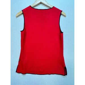 Add a pop of color to your wardrobe with this red BCBG Max Azria tank top. Its sleeveless design and black trim create a sleek, modern aesthetic.