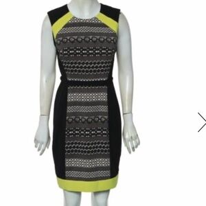 BCBGMAXAZRIA Lace Print Colorblock Eileen Neon Dress Size 8 EUC