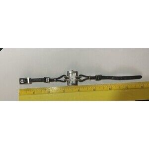 BCBGMAXAZRIA Ladies BG6014 Classic Crystal Black Leather Strap Watch New Battery