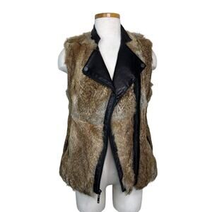 BCBGMAXAZRIA Leather Rabbit Fur Vest Asymmetrical Zipper Front Brown S Small