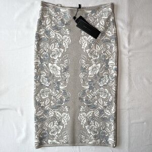 BCBGMAXAZRIA Leger Blue Gray Floral Bandage Pencil Skirt Size M NWT $198 MSRP