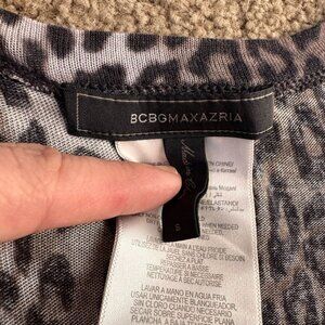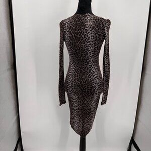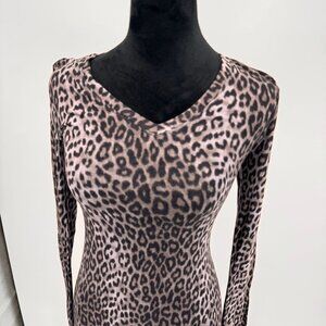 BCBGMAXAZRIA Leopard Long Sleeve Midi Dress V Neck Womens S Jersey Thin Fitted