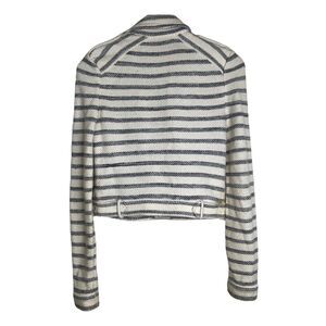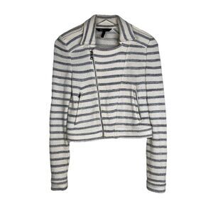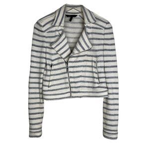 BCBGMAXAZRIA Levi Striped Asymmetrical Zip Cropped Moto Jacket FLAW White XS
