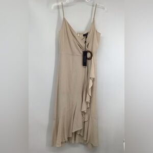 BCBGMAXAZRIA Linen Blend “Doris” Ruffled Midi Dress Corozo Beige NWT Size 6