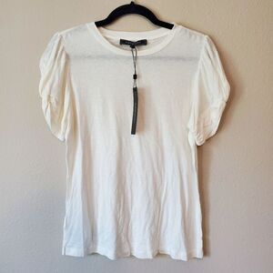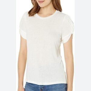 BCBGMAXAZRIA Linen-Blend Twisted Short Sleeve Basic White Tee