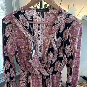 BCBGMAXAZRIA Long Sleeve Surplice Woven Top Size Small