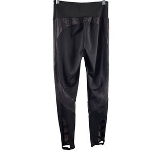 BCBGMAXAZRIA Medium Ankle Leggings with inlaid Mesh & Ankle Cutouts Black