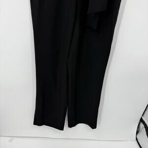 BCBGMAXAZRIA Medium Long Sleeve Surplice Jumpsuit Black Tie Waist shoulder padding & slash pockets