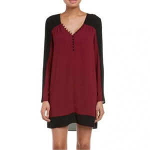 BCBGMAXAZRIA Merlot and Black Colorblock Long Sleeve Giada Dress Size XS