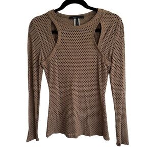 Fun, stretchy mesh top from BCBGMAXAZRIA with fun cutouts at the shoulder. Size Small and in great preowned condition; no visible flaws.