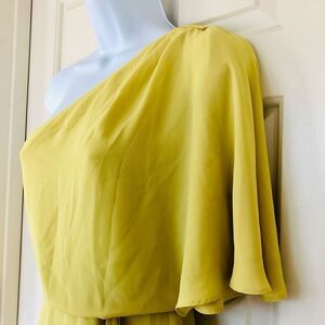 BCBGMAXAZRIA Mina Dark Lime One Shoulder Mini Dress
