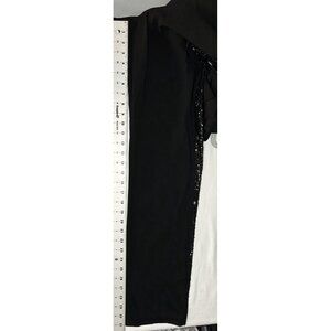 The BCBG MAXAZRIA Mirabella Jumpsuit in XS is a sleek and formal one-piece outfit perfect for weddings, parties, or cocktails. The sleeveless design with an open back and asymmetric drape adds an elegant touch to the outfit, while the sequins and zipper accents give it a touch of glamour. Made from crepe fabric, this jumpsuit features a round neck, button closure at the neck, a snap closure across the back, and an elastic waist for a comfortable fit. With a 31-inch inseam and straight leg style, this jumpsuit is both stylish and trendy, making it a great choice for all seasons.