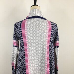 BCBGMAXAZRIA Multi-Color Mixed Print High Low Hem Open Front Cardigan