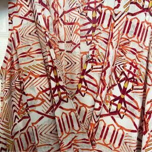 This BCBGMAXAZRIA multicolored patterned romper is a size S and has been previously owned. It is in good used condition