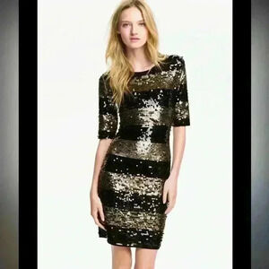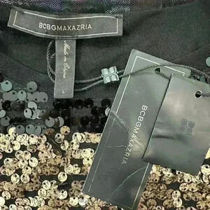 BCBG MAXAZRIA NWT Marta Black Gold Dress Size L Combo Allover Sequin Striped Sheath