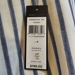 BCBGMAXAZRIA NWT "YOUSRA" DRESS BLUE AND WHITE STRIPED PEPLUM