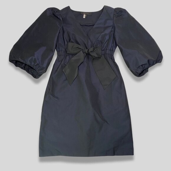 BCBGMAXAZRIA Navy Tafetta Black Bow Dress Size XS