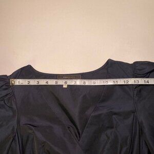 #Puff sleeves #mini dress #navy dress #elegant #bow detail #V-neckline #vintage-inspired #romantic style #party dress #statement piece #timeless fashion #modern classic #cinched waist #evening wear #feminine #chic #sophisticated #cocktail dress #formal event #stylish