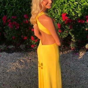 BCBGMAXAZRIA Olesya Draped Cutout Gown Yellow