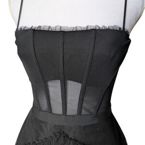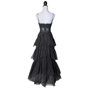 BCBGMAXAZRIA Oly Black Corset Tulle Tiered Ruffle Gown Dress Size 2 Prom Revolve