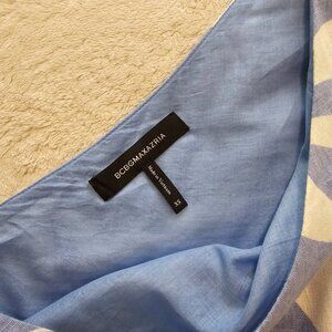 BCBG Midi dress, perfect for summer brunch or evening. Shirring shoulder detail one sleeve with side zipper closure. Dress is fitted true to size XS.