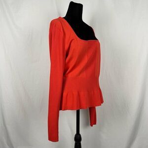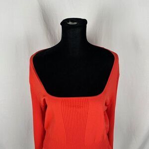 BCBGMAXAZRIA Orange Square Neck Knit Long Sleeve Blouse - Women’s XL