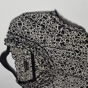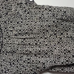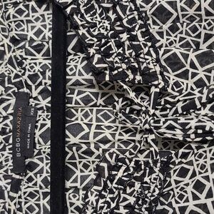 BCBGMAXAZRIA Pattern Black/ Cream Mod Diamond Square Peasant Top Size XXS