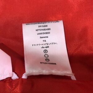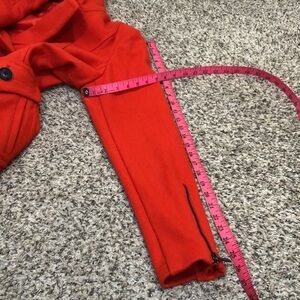Excellent condition no stains rips or fading. Double breasted, button closure, notched lapel, fully lined Peacoat with zipper accent on the sleeves and ribbed sweater knit insert on the sleeves. Wool blend shell. It’s a reddish orange color. The tag says it is orange but it leans more towards red.