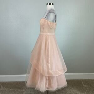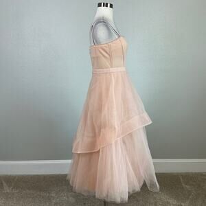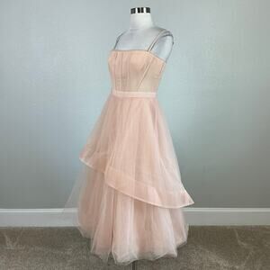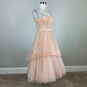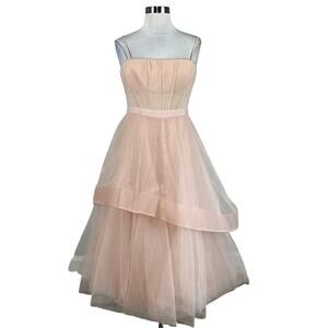 BCBGMAXAZRIA Pink Tulle Fit and Flare Cocktail Dress Size 10 Corset Bodice Midi