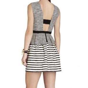BCBGMAXAZRIA Piper White Black Peplum Mini A- Line Dress Size 4