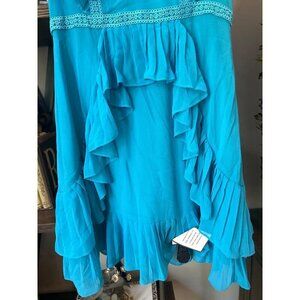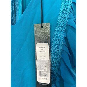 BCBGMAXAZRIA Pleated Ruffled Mini Dress Blue Womens Size 0