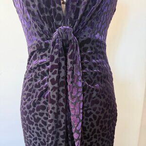 BCBGMAXAZRIA Purple Burnout Velvet Halter Gown S. Soft stretchy fabric, ties at waist. Figure flattering. Excellent condition. Worn once, no sign of wear, looks new.
