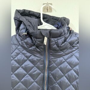 BCBGMAXAZRIA Quilted Hooded Jacket Navy Blue Size XL EUC