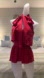 BCBGMAXAZRIA Red Celline XXS Sleeveless Pussycat Bow High Waist Peplum Blouse