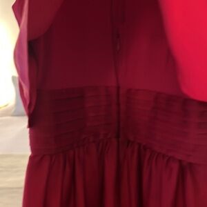 BCBGMAXAZRIA Red Celline Sangria Sleeveless Pussycat Bow High Waist Peplum Top