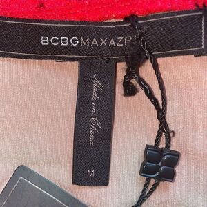 BCBGMAXAZRIA Red Lace Sheath Dress Knit Overlay Cocktail Party Size M
