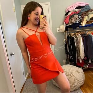 I adore this stunning and super sexy/flattering designer BCBGMaxazria cherry bomb red strappy mini dress with cute mesh detail at front
