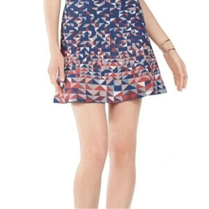 BCBGMAXAZRIA Red White Blue Circle Geometric Skater Mini Knit Skirt & Top Size S
