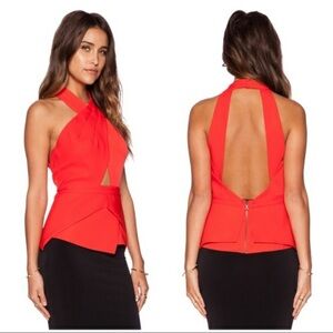 BCBGMAXAZRIA Remmie Open-Back Peplum Halter Top red