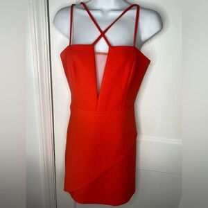 BCBGMAXAZRIA Revolve Linzee Red Orange Strappy Dress With Netting