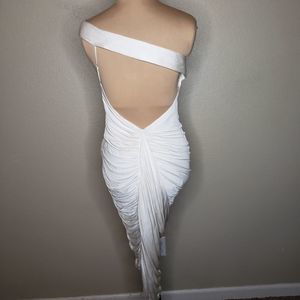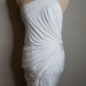 BCBGMAXAZRIA Runway Ivory Gathered Slinky Bodycon One Shoulder dress 8