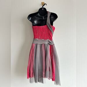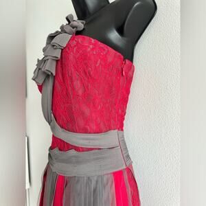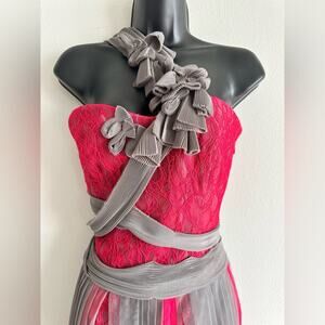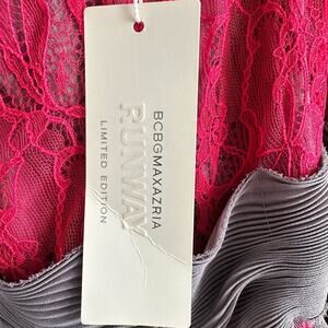 BCBGMAXAZRIA Runway Red Lace & Gray Mesh Ribbon Dress Limited Edition Size 2 NWT