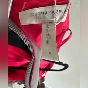 Rare BCBGMAXAZRIA Runway Limited Edition cocktail dress — new with tags. A true showstopper featuring a vivid red lace base, sculptural pleated gray mesh overlay, and ribbon rosette detailing. One-shoulder design with cascading wraps and architectural pleats give this piece a dramatic, high-fashion silhouette. Fully lined with side zip. A collector’s piece that feels straight off the runway (because it is).