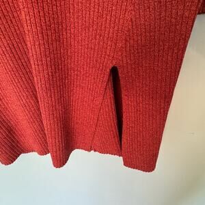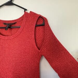 BCBGMAXAZRIA Rust Ribbed Knit Long Sleeve Dress Cutout Shoulder Slit