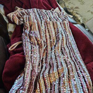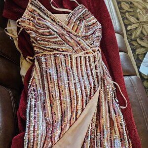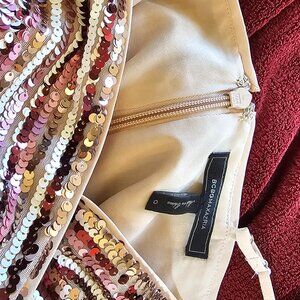 BCBGMAXAZRIA Sequin Wrap Dress – Cream/Pink, Size 0