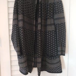 BCBGMAXAZRIA Shadia Textured Jacquard Sweater Coat in Black and Gray Size Small
