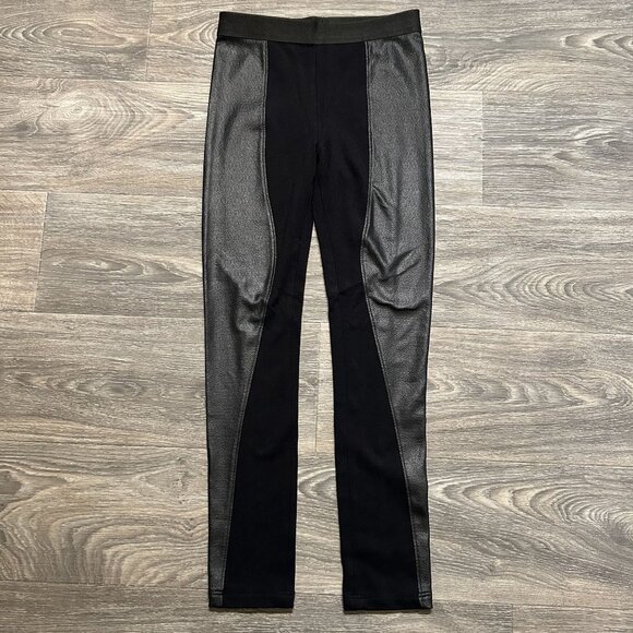 BCBGMAXAZRIA Shelby Black Faux Leather Panel Leggings Small BCBG NYE Night Out