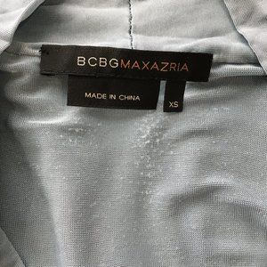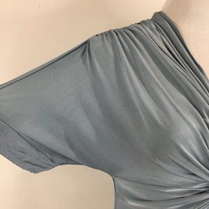 BCBGMAXAZRIA Shiny Stretch Slate Blue Knot Front V Neck Flutter Sleeve Shirt
