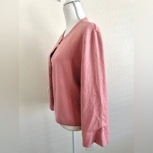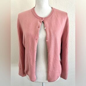 Chic pink cardigan with button-up front. Perfect for layering. Soft and comfortable. Excellent condition.