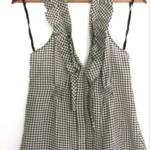 BCBGMAXAZRIA Silk Ruffle Gingham Halter Top. Black & White, S, NEW WITH TAGS